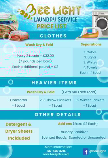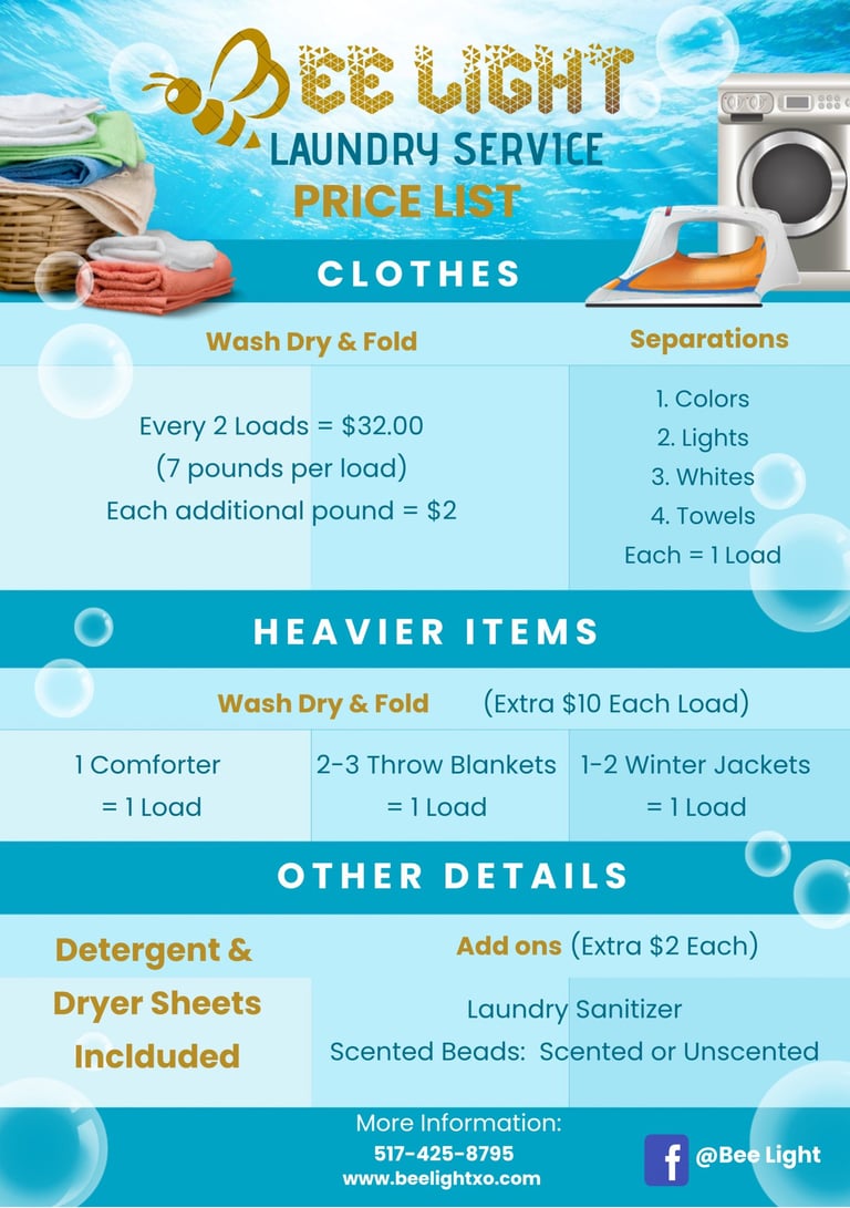 From your hive to ours, fresh laundry - washed, dried and folded with your choice of detergent
